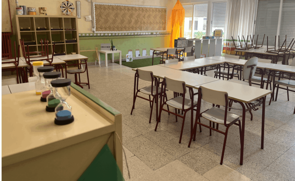 También se han incorporado alfombras y espacios de trabajo en el suelo, ofreciendo diferentes posibilidades de aprendizaje. Este tipo de organización permite respetar las preferencias y necesidades de cada alumno, favoreciendo la concentración y la autorregulación. En el caso de los alumnos con NEE, esta flexibilidad ha resultado muy beneficiosa, ya que les permite encontrar un entorno en el que se sientan más cómodos y seguros.