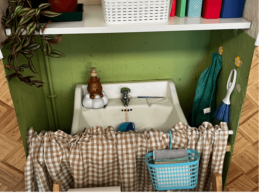El aula en la que trabajo tiene unas dimensiones de 6×6 metros, lo que implica un espacio relativamente limitado para el número de alumnos. Sin embargo, cuenta con un aspecto muy positivo: dispone de un lavabo dentro del propio aula y una puerta que da directamente al huerto. El lavabo resulta especialmente valioso dentro de un enfoque Montessori, ya que facilita la autonomía del alumnado en actividades de vida práctica, como lavarse las manos, limpiar materiales o realizar pequeñas tareas relacionadas con el cuidado del entorno. Además, evita desplazamientos innecesarios y permite integrar estos hábitos en la rutina diaria de manera natural.